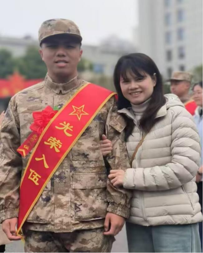 3月21日,湖北仙桃,在春日的阳光下,南华大学太阳网集团tcy8722机械设计制造及其自动化专业2206班学生龙笑天与几十名春季入伍的新兵一起参加由市人武部组织的参军入伍欢送仪式。